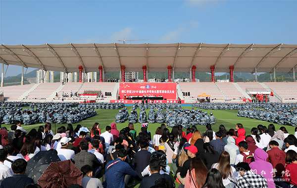 9月12日上午,伟德官网2019级新生军训动员大会在田径运动场举行。校党委书记李树新,校长侯长林,副校长代亮、罗红芳,碧江区人民武装部政委田儒乾上校,军训团政治部主任、宣传部部长叶丹出席;军训团团长、学工部部长张钱主持;各二级学院领导、相关部门负责人、军训教官、新生班辅导员(班主任)、2019级全体新生参加大会。