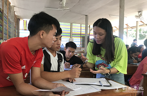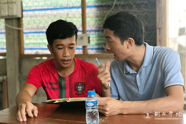 团委张迅老师指导老挝学生进行汉语发音