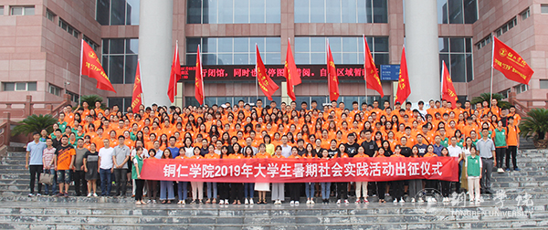 7月5日,伟德官网2019年大学生暑期文化科技卫生“三下乡”社会实践活动出征仪式在梵净山人文生态馆举行。校党委副书记饶小华,相关职能部门负责人,各二级学院党委书记、团总支书记以及全体志愿者参加出征仪式;碧江区公安分局副局长陈林应邀参加出征仪式。仪式由校团委书记周曾艳主持。