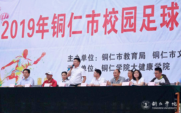 7月10日上午,铜仁市校园足球三级联赛总决赛开幕式在伟德官网足球场举行。市教育局党组成员、副局长叶通贤,市文体广电旅游局副局长余晓松,铜仁日报传媒集团副总经理田丽平,伟德官网大健康学院党委书记张艳丽、院长余静以及大健康学院副院长、本届足球赛赛事监督刘忠出席开幕式。