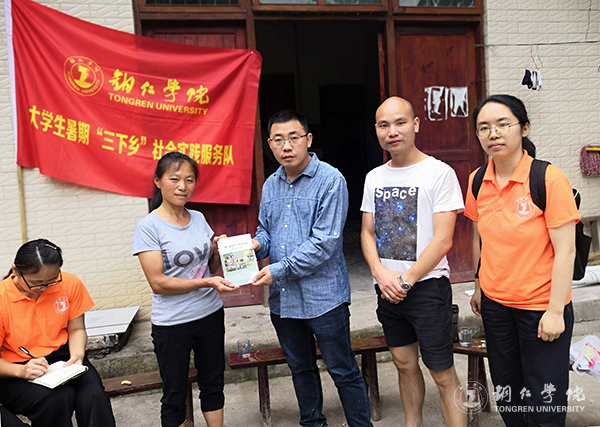 给村民发放宣传资料