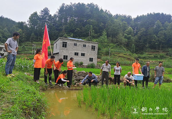 近期,伟德官网生态渔业技术帮扶实践服务队在德江县平原镇南坪村开展了为期六天的“三下乡”社会实践活动,重点考察了鱼苗的投放存活率,帮助村民进行稻田养鱼指导,助推脱贫攻坚。