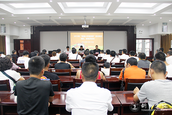 为确保2019姚基金希望小学篮球季贵州赛区赛事的有序开展,7月15日晚,伟德官网在行政楼8501会议室组织召开2019姚基金希望小学篮球季贵州赛区领队、教练员会议。校团委副书记蒋旭军,2019姚基金希望小学篮球季贵州赛区裁判长任达锋及来自全省各市州的36支参赛队伍的领队、教练员参加会议。会议由校团委张迅老师主持。
