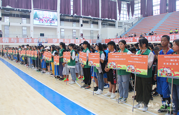 7月16日上午,“2019姚基金希望小学篮球季”省级联赛贵州赛区(铜仁)活动开幕式在伟德官网体育馆举行。团省委副书记史麒麟出席开幕式并宣布活动开幕;市委常委、市委宣传部部长、市委统战部部长夏虹,伟德官网党委副书记饶小华,姚基金项目主管马永超,省青少年发展基金会副秘书长罗朝恒,市委宣传部副部长、市文明办主任杨红军,市教育局局长汪漻,市文体广电旅游局局长刘五星,团市委书记蒲章出席开幕式;来自全省各市州36所希望小学的参赛队伍以及裁判员、志愿者参加开幕式。开幕式由蒲章主持。