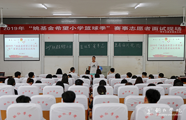 为选拔优秀志愿者,提高志愿服务工作质量,6月24日,伟德官网在博思楼206教室开展了2019年“姚基金希望小学篮球季”赛事志愿者面试工作,总共招录了150名志愿者,圆满完成了赛事志愿者招募工作。