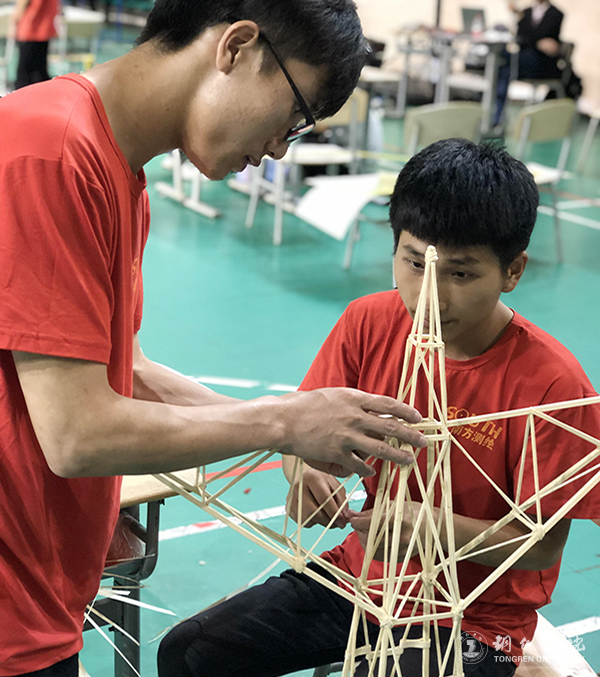 参赛队伍在比赛现场制作模型