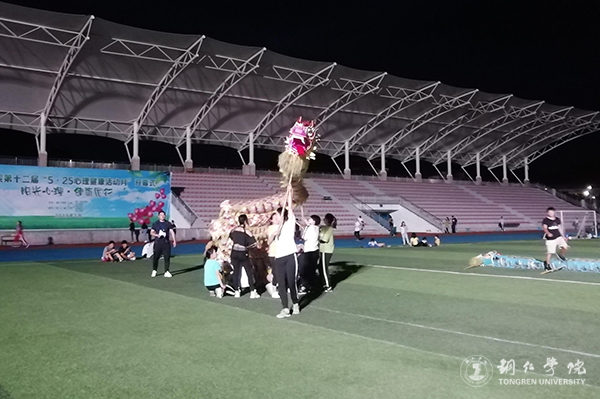 九支龙队中有两支队伍是由大一新生组成,在老队员和老师的耐心指导下,新生不辞辛劳,坚持每天训练,从不耽误。为了迎接本次大赛开幕式,一周以来,龙队师生艰苦集训,精心排练,抓技术,抠细节,力求精益求精。每天晚上,舞龙队队员们双手笔直地高举龙形道具在操场上挥洒着汗水,奋力地练习着各种动作,为正式上台表演做好了充分的准备。他们的努力得到了观众们的充分肯定,纷纷表示这是自己看过的最精彩的舞龙表演。获得观众们的好评,让师生们倍感欣慰。