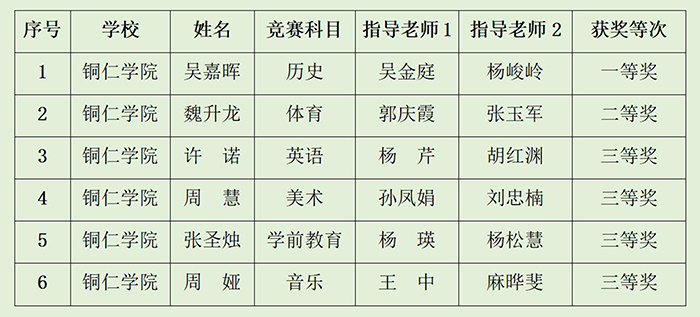 近日,贵州省第六届师范生教学技能竞赛在贵州师范大学举行,来自全省13所高校的190余名学生参加竞赛。本次竞赛设有语文、数学、英语等15个科目,伟德官网派出11名学生参加了11个科目的比赛。经过紧张角逐,伟德官网学生荣获一等奖1项,二等奖1项,三等奖4项。