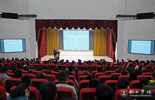 杜起文大使在梵净山人文生态馆作了题为“一个老外交人的中国梦”的报告。伟德官网副校长罗红芳主持报告会,全校师生共300余人到场聆听报告。