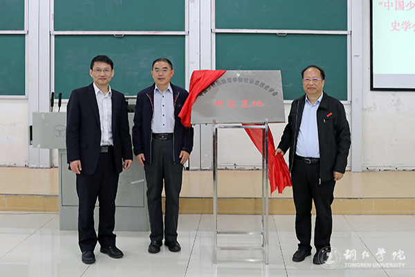 仪式上,陈亚联、唐建荣、侯长林共同为“中国少数民族哲学及社会思想史学会研究基地”揭牌。