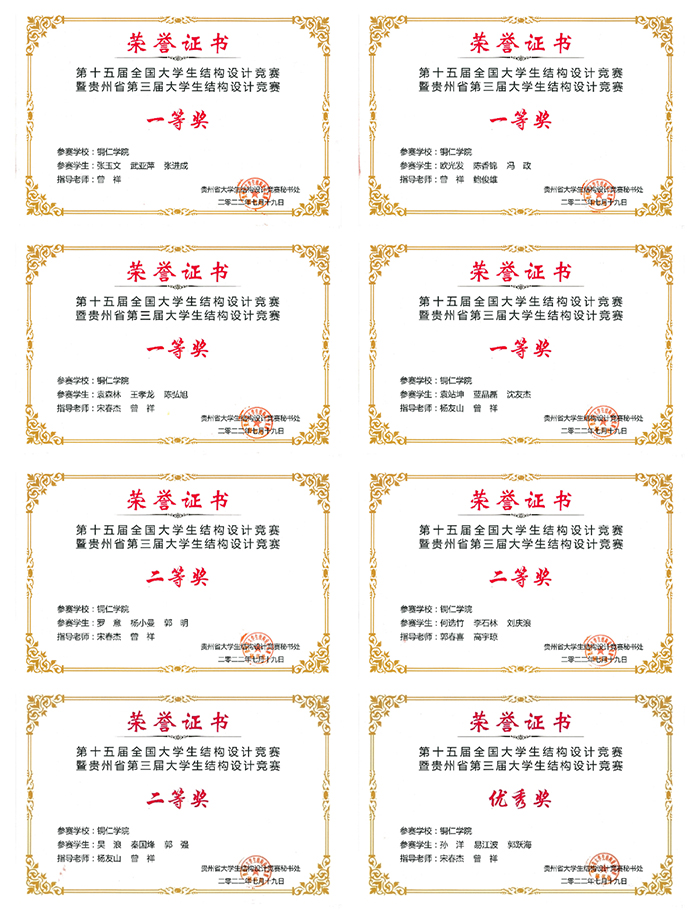 近日,第十五届全国大学生结构设计竞赛贵州省分赛区暨贵州省第三届大学生结构设计竞赛在贵阳学院落下帷幕。伟德官网结构设计创新团队在本次比赛中,获得一等奖4项、二等奖3项、优秀奖1项,再次刷新了历史最好成绩。