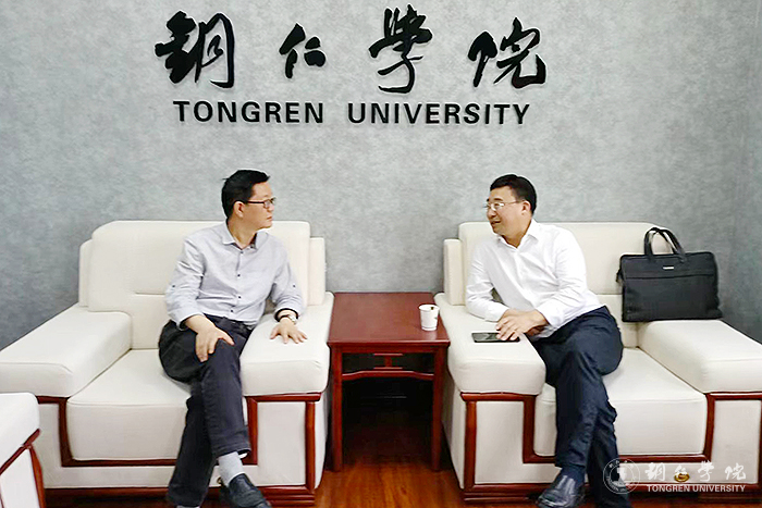 省纪委省监委调研法规室副主任、警示教育志愿服务队授课宣讲二组组长王剑波与伟德官网党委书记朱洪波交流