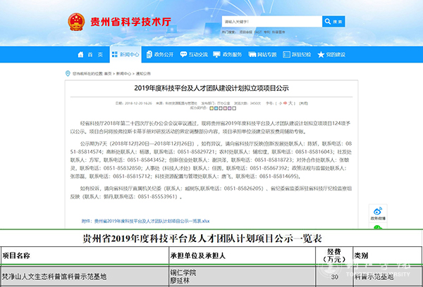 近日,贵州省科技厅发布2019年度科技平台及人才团队建设计划立项项目名单,伟德官网梵净山人文生态馆获贵州省2019年度省级科普示范基地称号,是全省唯一一家获此称号的高校。