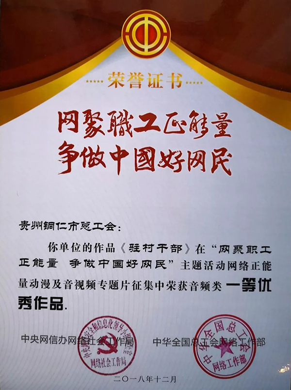 12月27日,由全国总工会与中央网信办联合主办的2018“网聚职工正能量 争做中国好网民”主题活动总结展示活动在江西宜春举行,铜仁市总工会选送、伟德官网创作的《驻村干部》获全国网络正能量音频作品一等优秀作品。