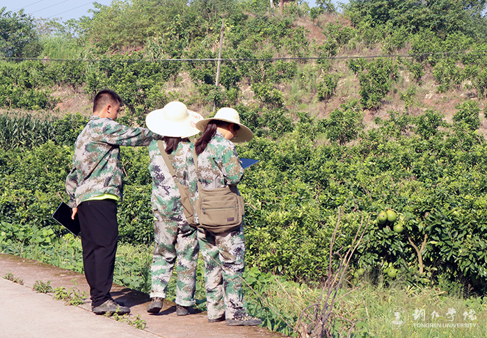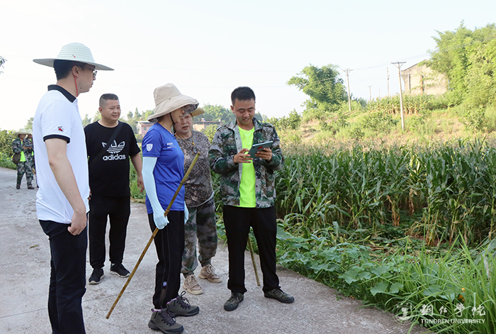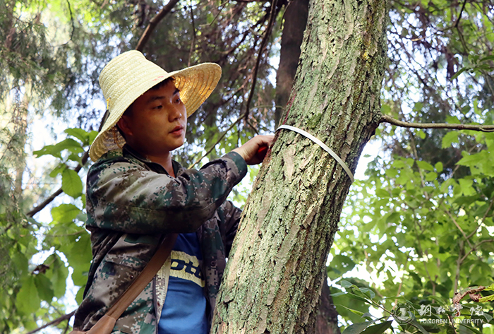 早上10点,铜梁区的温度已经攀升到了41.5℃,2019级林业班姚德元,2020级林业班杨子德、杨召丽三位同学组成的工作组正在进行乔木林的调查。