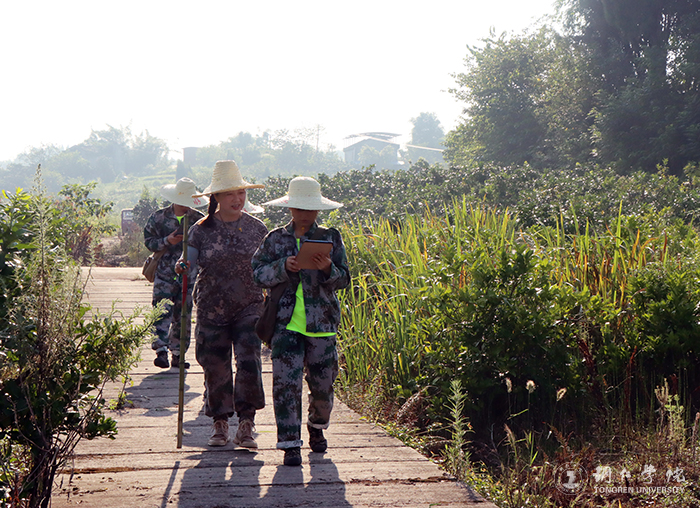 清晨五点半,昏黄的路灯下,偶尔有稀稀疏疏的行人走过,师生们已经开始整装。穿上写有“bv伟德国际1946林学专业技术服务团队”的工作服,拿上森林资源调查设备,一天的工作伴随着鸟鸣声开始了。