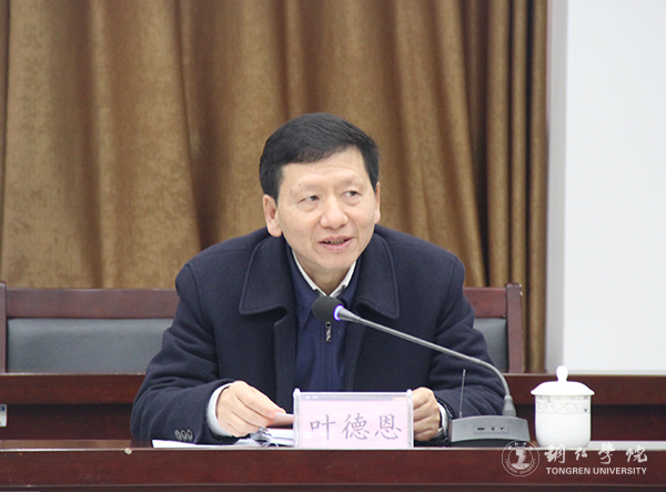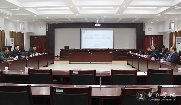 1月3日,铜仁市绩效考核检查第二组组长、市人大常委会党组成员、副主任叶德恩,成员、市绩效办副主任勾永康、市安全监管局检测中心主任饶富强一行三人前来伟德官网检查指导工作。伟德官网在行政楼8501会议室召开工作汇报会。伟德官网党委书记李树新,校长侯长林,党委副书记饶小华,副校长代亮,纪委书记吴先佳及各部门负责人参加会议。会议由侯长林主持。