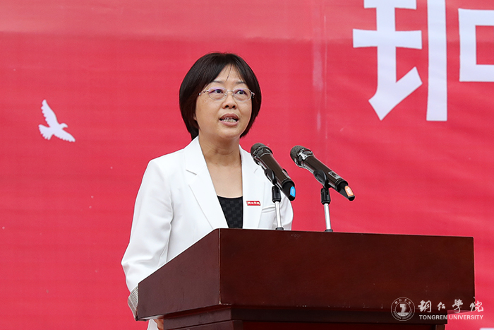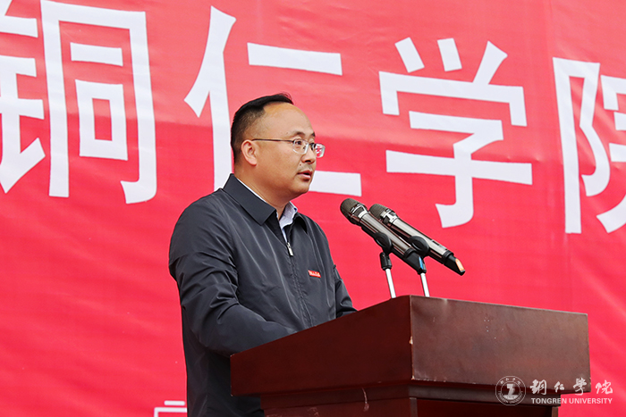 杨建在致辞中代表学校向全体裁判员、工作人员和积极参与本届运动会的老师们、同学们表示衷心的感谢,向运动健儿在赛场上展现出友谊、团结、拼搏的精神表示崇高敬意。他指出,入场式的整齐队伍、开幕式的精彩节目、比赛中运动员的顽强拼搏精神、此起彼伏的啦啦队的加油声、一篇篇令人振奋的通讯稿、一个个忙碌的志愿者的身影等等,充分体现了此次运动会“喜迎二十大,奋进新征程,建功新时代”的主题,展示了当代青年的青春风采。他强调,我们要积极响应习近平总书记关于建设健康中国、体育强国的号召,养成良好健康习惯和健康生活方式。全校师生要把运动场上努力拼搏、团结奋进的精神内化为加强身体锻炼、增强学习动力的力量,更要秉承“明德·致用”的校训,成为德才兼备、身心健康的高素质人才,争取在青春的赛道上跑出当代青年的最好成绩。