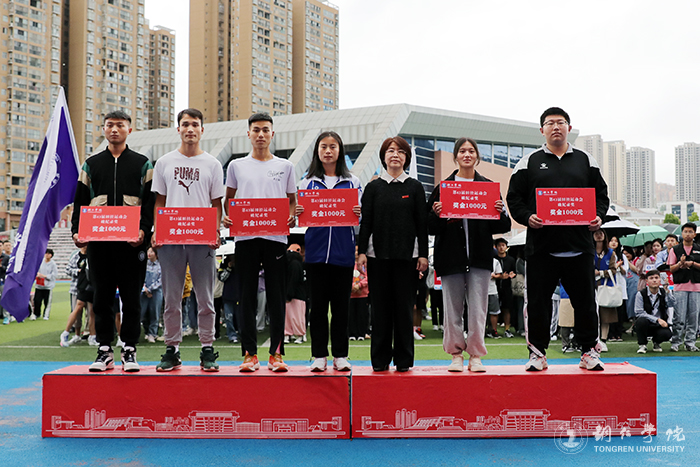 闭幕式上,宣布了本届运动会竞赛成绩。在团体总分方面,大数据学院、大健康学院并列获第一名,人文学院获第二名,教育学院获第三名。在先进集体方面,农林工程与规划学院、大数据学院、经济管理学院获精神文明奖,乌江学院获体育道德风尚奖。在欢乐的音乐声中,出席闭幕式的领导为获奖集体和个人进行了颁奖。