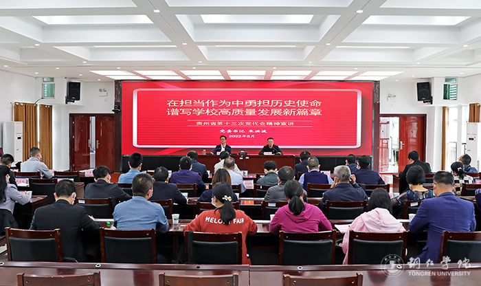 5月26日,伟德官网举行学习贯彻中国共产党贵州省第十三次代表大会精神宣讲会,党委书记朱洪波作专题宣讲。他强调,要深刻理解准确把握省第十三次党代会精神,勇于担当善作善成,以高质量工作推动学校高质量发展。党委委员、宣传部部长叶丹主持宣讲会。各学院党委(党总支)书记、院长,各部门主要负责人,马克思主义学院全体副处级以上领导干部和教师代表参加宣讲会。