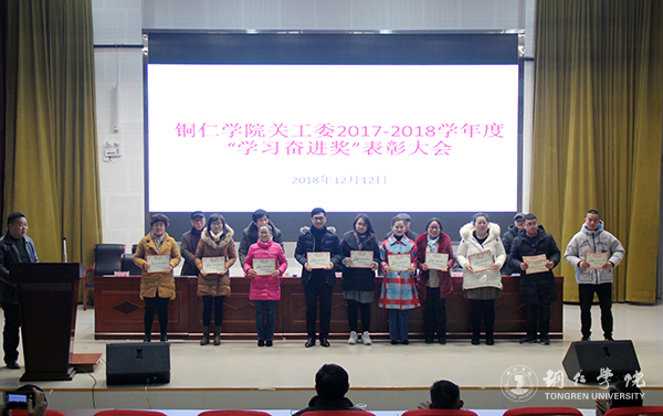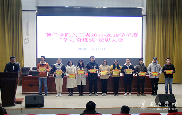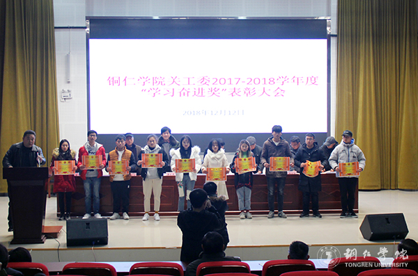 12月12日下午,伟德官网在梵净山人文生态馆召开2017-2018学年度“学习奋进奖”表彰大会。校党委副书记、校关工委主任饶小华,校关工委常务副主任谭光涛、副主任谢元炳、冯云光、杨光大及学生资助中心、党委学工部负责人,各二级学院党委书记、学生科长、获表彰的师生参加大会。大会由党委学工部副部长刘玉康主持。