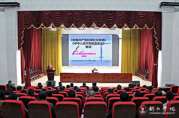 为扎实推进“两学一做”学习教育常态化制度化,加强党风廉政建设,增强领导干部和纪检干部党规党纪意识,12月18日,伟德官网在梵净山人文生态馆举办了“为人师表·纪法先行”廉政专题讲座,特邀铜仁市纪委监委案件审理室主任田富饶主讲。伟德官网副处级以上领导干部和校纪委委员、纪委监察室全体教职工、各分党委(党总支)纪检委员、各党支部纪检委员参加讲座。讲座由纪委监察室主任王继红主持。