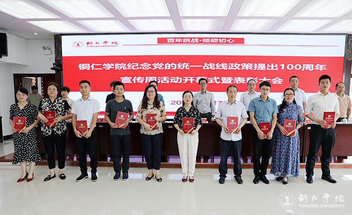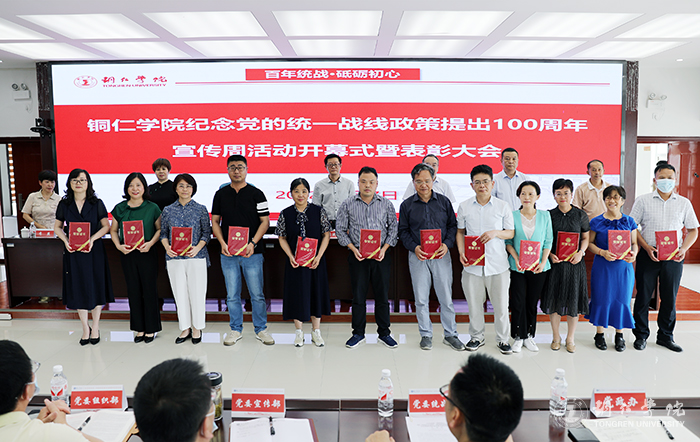 6月7日,伟德官网在行政楼8501会议室召开“百年统战·砥砺初心”纪念党的统一战线政策提出100周年宣传周系列活动开幕式暨表彰大会。学校党委书记、统战领导小组组长朱洪波,铜仁市委统战部副部长赵相林,铜仁市民宗委党组成员、副主任杨成刚,铜仁市教育局正县长级干部杨玲,铜仁职业技术学院党委委员、统战部部长强寿荣,铜仁幼儿师范高等专科学校党委委员、统战部部长李燕,贵州省健康职业学院党委宣传统战部统战科副科长胡琴琴等领导和嘉宾出席会议。伟德官网党委副书记、统战工作领导小组副组长代亮主持会议。