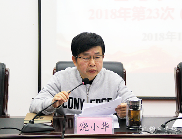 11月6日,伟德官网党委理论学习中心组在行政楼8501会议室召开2018年第25次扩大学习会。党委书记李树新,校长侯长林,党委副书记饶小华,纪委书记彭吉黔,副校长代亮、罗红芳、王嘉福出席会议;各部门负责人、二级学院党委书记参加学习。会议由李树新主持。