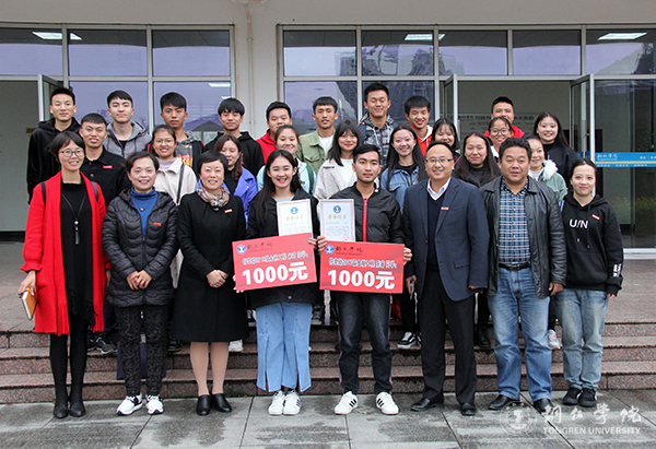 会上,罗红芳为两位留学生颁发了奖状和奖金;学工部教师黄橙紫宣读了表彰文件。