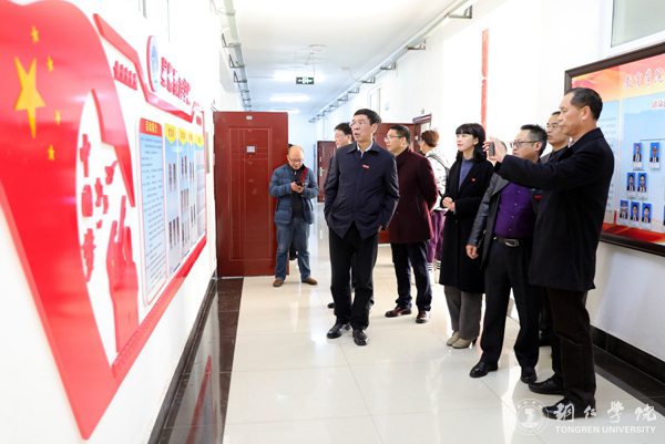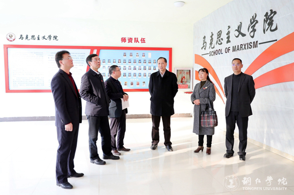 11月22日,贵州省2018年本科高校思想政治工作检查专家组组长、贵州医科大学党委书记林昌虎,副组长、贵阳学院党委副书记张年举,成员、贵州财经大学商务学院党委书记杨大平、贵州医科大学宣传部部长杨毅、团省委学校部副部长韦卫一行五人前来伟德官网检查指导工作。