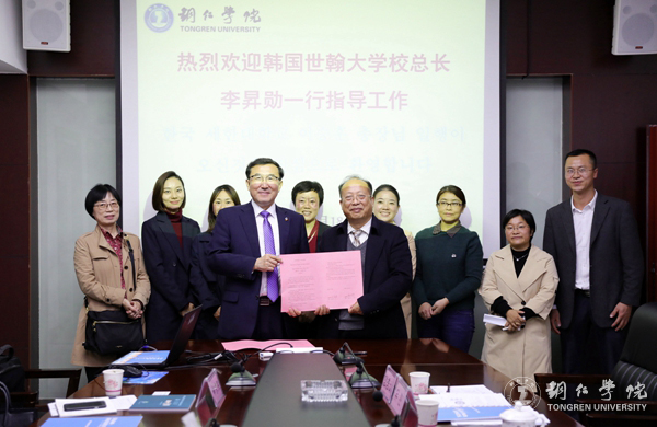 会上,双方就联合培养研究生的可行性进作了探讨交流,提出了“0.5+1.5”的联合培养模式;韩国世翰大学提出了聘请校长侯长林为该校博士生导师的想法。侯长林、李昇勋分别代表两校签署了合作协议。
