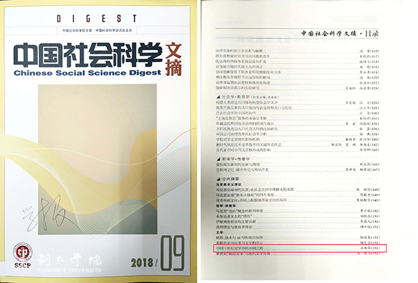 《中国社会科学文摘》由中国社会科学院主办,作为择优推介人文社会科学重要研究成果的文摘类期刊,其强调学术品位,突出问题意识,倡导理论创新,兼及新知趣味。该文能够被《中国社会科学文摘》的“论点摘要”栏目摘编。这既是对作者研究成果的有力肯定,也是对学报编校工作的充分认可。