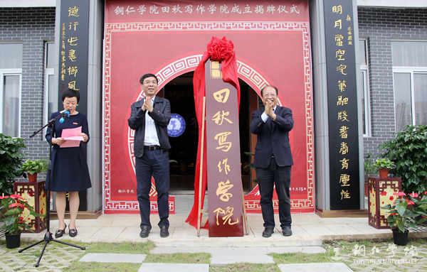 仪式上,饶小华宣读了田秋写作学院成立文件;李树新、侯长林共同为田秋写作学院揭牌。中国作家协会副主席叶辛、贵州省文联主席欧阳黔森、中国创意写作中心执行副主任葛红兵、贵州省首位鲁迅文学奖获得者肖江虹分别发来的贺信。他们谈到,以写作的名义成立一个学院,在全国高校中实为少见,从中可以看出学校长远的发展眼光和对文学精神的引领。他们衷心的祝愿田秋写作学院各项事业蒸蒸日上,培养出一批批爱文字、懂文学的学生。