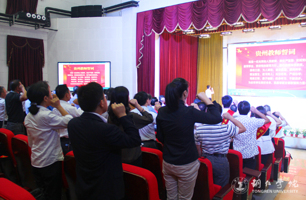 会上,在党委宣传部部长叶丹带领下,现场全体教师重温了《贵州教师誓词》,进一步加深了对教师的师德教育。