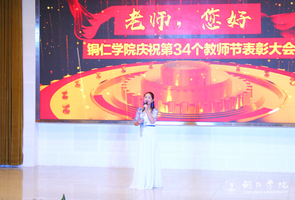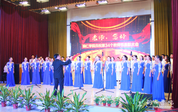 颁奖过程穿插了精彩的文艺表演。艺术学院教师张妮带来的一曲独唱《老师,您好》,表达了莘莘学子对老师的感激和敬仰;艺术学院师生合唱团带来的大合唱《梵净茶缘》《奋斗的时代在一起》歌声高昂、别具特色,为表彰大会画下了圆满的句号。
