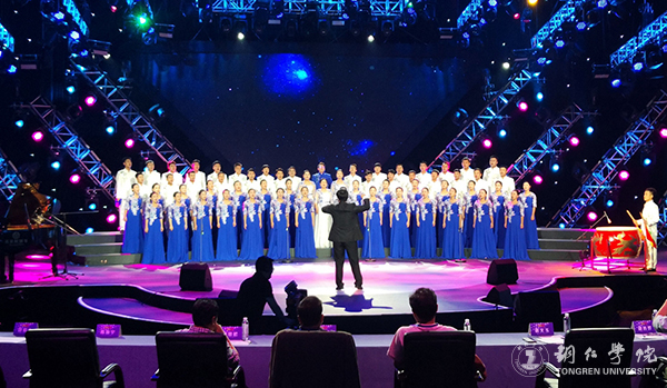 本次决赛以现场演唱水平为唯一评分依据,不设等次奖,按照总分选取前六名作为优秀奖,由8位专业评委和大众评审团共同为选手当场进行打分,其中大众评审团由20位大众评委组成。经过3个多小时的比拼,伟德官网合唱团演唱的必选歌曲《奋斗的时代在一起》和自选歌曲《梵净茶缘》获得了评委和观众的高度认可。伟德官网合唱团演唱的参赛曲目由艺术学院的李运春改编、创作,任元春担任指挥、谭景元担任伴奏,杨芳、张妮、符玲、汪熙玲担任声部指导、覃春江担任领唱,宣传部田淼担任动作编导、合唱团的领队、服装设计、道具制作以及后勤保障工作。