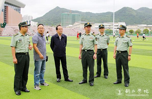9月17日,铜仁军分区政委费光明、战备建设处处长蒋智胜,碧江区人武部部长何彪、副部长杨勇涛一行来伟德官网看望军训新生。伟德官网副校长代亮、武装部部长张钱等陪同看望。