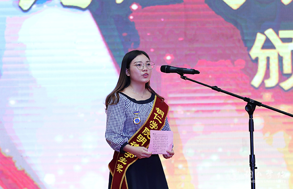 典礼上,获奖代表、农林工程与规划学院罗秋灵作了发言。她说,大学是人生中最宝贵、最美好的年华,要想让大学生活不苍白、让青春不遗憾,就要以泰然之心待己、以坚持之心做事、以感恩之心对人,找准自己的方向,不断学习进步,收获美丽人生。