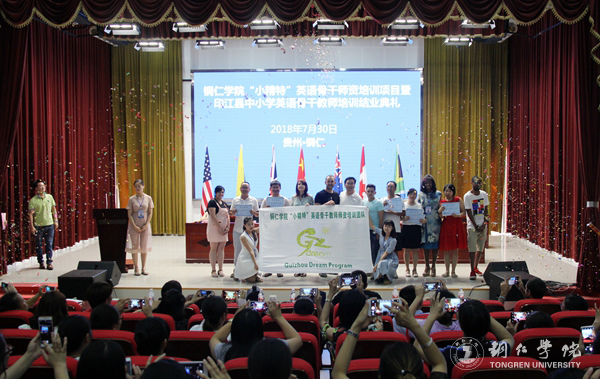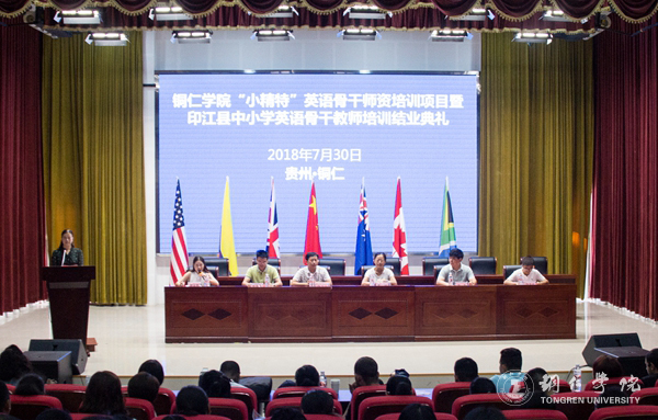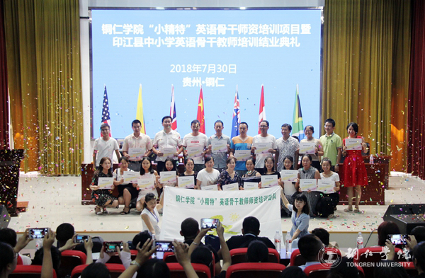 7月30日上午,由bv伟德国际1946和印江县教育局共同主办,伟德官网国际学院承办的“小精特”英语骨干师资培训项目暨印江县中小学英语骨干教师培训结业典礼在人文生态馆顺利举行。伟德官网发展规划处处长兼社会服务中心主任罗静、国际学院党委书记张志会、招生与就业指导处副处长赵坤出席,来自美国、南非、哥伦比亚等国家的11名外籍教师以及印江县中小学180名英语骨干教师参加了结业典礼。结业典礼由国际学院杨雨桦老师主持。 典礼上,该项目负责人杨国忠老师对本次“小精特”培训的前期准备工作、项目实施过程、教学重点难点、户外拓展和存在的问题进行了详细总结;印江一中教师黄昭平代表学员进行了交流发言,分享了培训期间的收获和体会,他表示要将培训期间的所学所获,结合实际运用到实际教学中去,进一步提升英语课堂教学创新能力;哥伦比亚籍教师Yeinson代表培训教师作了交流发言,对bv伟德国际1946所搭建提供的平台表示衷心感谢,分享了作为外籍教师的培训心得体会和课堂教学感受。他表示要继续与中方教师探讨,合作交流,共同提升,共同服务英语课堂教学;与会领导向学员颁发了结业证书和优秀学员证书。