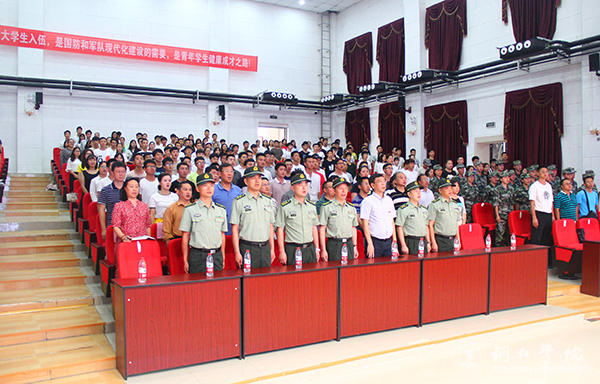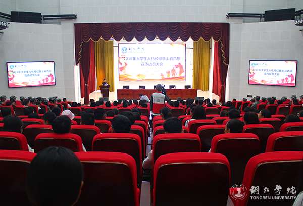 为了培养当代大学生的坚强意志和爱国精神,促使青年学子积极为国防现代化建设做出应有的贡献,6月7日下午,伟德官网在梵净山人文生态馆举行2018年大学生入伍预征暨士官直招宣传动员大会。铜仁市委常委、铜仁军分区政委费光明,伟德官网党委书记李树新、副校长罗红芳出席大会;各二级学院教师代表、学生代表、退役复学学生参加大会。大会由罗红芳主持。