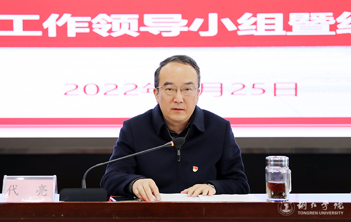 代亮讲话,回顾总结了学校2021年统战工作,安排部署了2022年学校统战重点工作。他指出,过去一年来,学校统一战线深入贯彻落实党的十九大和十九届历次全会精神和习近平总书记视察贵州重要讲话精神,坚持以学习贯彻习近平总书记关于加强和改进统一战线工作的重要思想为主线,以贯彻落实《中国共产党统一战线工作条例》(以下简称《条例》)为重点,以发挥新时代统一战线法宝作用为目标,坚决贯彻落实上级党委关于新时代统战工作的重大决策部署。切实强化思想政治引领,共同思想政治基础得以更加巩固;强化贯彻执行,切实推动了《条例》的学习宣传和贯彻落实;强化主责主业,不断推进统战各项工作提质增效,学校统战工作取得了新进展。
