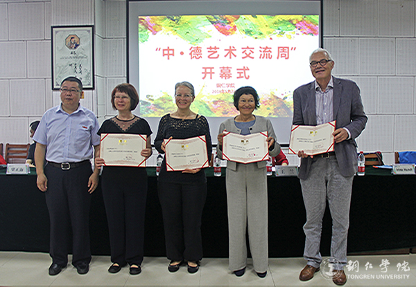 5月28日上午,由伟德官网主办、艺术学院承办的“中德艺术教育交流周”学术研讨活动开幕式在图书馆举行。中德文化使者、伟德官网客座教授王兰;柏林亚洲艺术博物馆馆长鲁克思博士,德国德累斯顿工业技术及工业经济大学经济学专家浑特教授,德国欧洲大学(福勒斯堡)纺织时装经济学专家费诺教授,柏林孔子学院德方副院长余德美;伟德官网教务处处长舒华教授,艺术学院党委书记崔德虎教授、院长李洁教授、副院长谢云中教授出席开幕式。铜仁职院技术学院、铜仁幼儿师范高等专科学校教师代表以及伟德官网艺术学院师生参加开幕式。开幕式由李洁主持。
