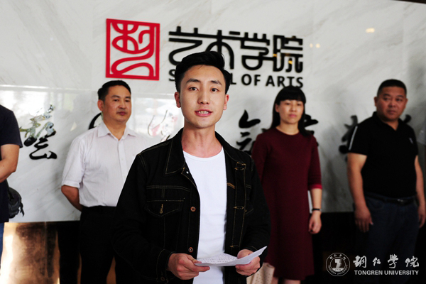 在开幕式上,崔德虎作了致辞。他对前来参加开幕式的各位领导和来宾表示欢迎和感谢,并介绍了本次作品展的基本情况。他指出,在校领导的关心支持和师生的共同努力下,同学们除了学好理论知识外,还经常深入乡村山寨,走进田间地头,寻找创作灵感,创作了一批内容丰富、形式多样、富有创意的艺术作品,本次的作品展就是他们学习成果的体现。随后,2014级视觉传达设计专业学生杨根代表毕业生作了发言,表达了对母校的留恋、感恩与祝福。