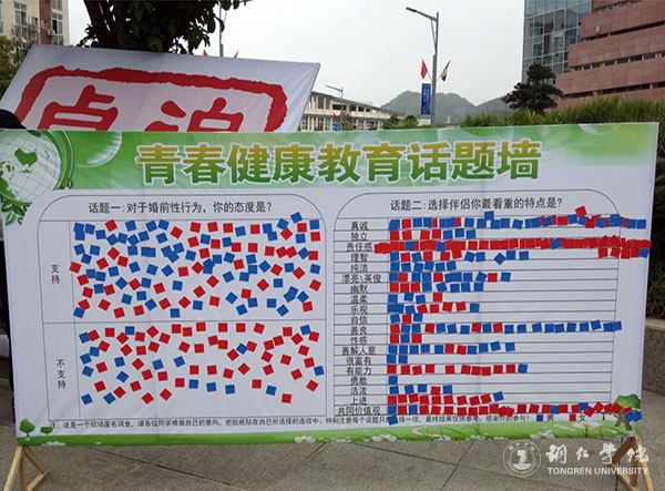 为了扩大性教育知识宣传范围,帮助广大学生掌握必要的性知识、树立科学的性态度和增强学生对青春健康的关注意识,使他们获得与年龄增长相一致的有关性生理、性心理和感情上的应有的知识,5月28日中午,伟德官网首次联合铜仁职业技术学院、铜仁幼儿高等专科学校在伟德官网A食堂门口共同开展了“高校联盟·知性相传”系列青春健康教育活动。