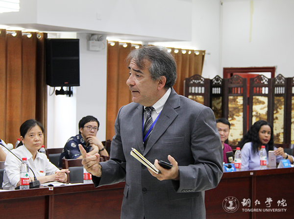 第十一届中国—东盟教育交流周“一带一路”大学通识教育论坛开幕后,众多外籍专家会聚一堂,紧紧围绕“服务地方基础英语教育教学改革创新”主题,积极开展研讨。与会专家积极交流发言,会场气氛热烈,研讨成效显著。加拿大籍专家、石阡一中外籍教师KATALINIC GEORGE,南非籍专家、印江一中外籍教师MENISA就在英语教育教学过程中的经验与大家进行了分享,就存在的问题和对策与大家进行了广泛而深入的研讨。铜仁第十五中学邬江校长、石阡一中陈元兵老师就外事工作做了专题发言。伟德官网国际学院副院长杨芹就服务地方英语基础教育教学改革作重点发言,强调bv伟德国际1946主动对接地方英语教育教学改革,就是结合伟德官网高水平应用型人才的目标定位,重点培养学生的国际化视野、英语“听说读写译”等应用能力,增强跨文化交际意识和交际能力,培养自主学习能力,提高综合文化素养,主动适应国家、社会对应用型人才的需要,推动地方基础教育国际化。伟德官网继续教育学院院长杨忠飞表示,要通过继续教育的多元化合作交流、服务地方的优势,进一步推动铜仁各区、县重点中学的国际化教育,推动地主开放办学,为bv伟德国际1946主动服务地方国际交流与合作奠定坚实的基础。