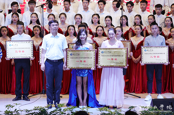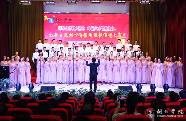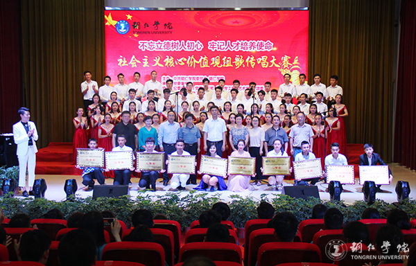 为深入学习宣传贯彻落实习近平新时代中国特色社会主义思想和党的十九大精神,努力营造健康向上的校园文化氛围,引导青年学生践行社会主义核心价值观,5月20日晚,伟德官网在梵净山人文生态馆举办了社会主义核心价值观组歌传唱大赛。学校党委书记李树新、党委副书记饶小华、副校长罗红芳、各二级学院领导、各部门负责人以及学校师生300余人到场观看比赛。来自10个学院的代表队参加比赛。