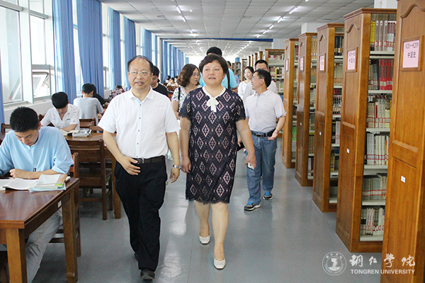 在图书馆里,邓川一行先后参观了亲子阅读中心、大学生自主学习中心、大厅服务区、人文社科类图书借阅区等。他们表示,图书馆丰富的馆藏、温馨的学习环境、人性化的服务、“三全’开放理念值得学习借鉴。