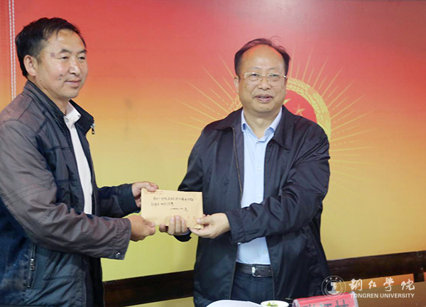 校长侯长林代表学校向南坪村捐赠扶贫资金