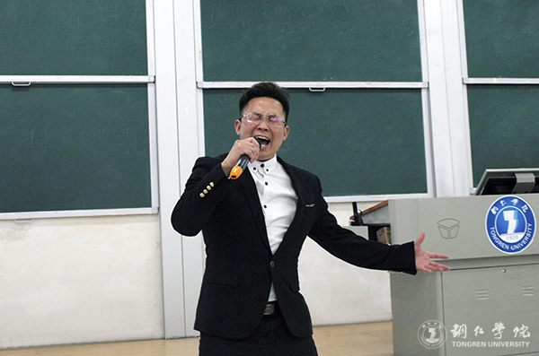 讲座上,覃春江与大家分享了他的声乐表演历程与心得体会。他说,音乐是能够给人带来快乐、带来享受和带来感动的,所以,自己在学习音乐的路上尽管困难重重,但却从未放弃,一直在不断地挑战自己。大学期间,参加了许多歌唱比赛,获得了很多大大小小的奖项,2008年还有幸去参加了中央电视台的演出,通过各种比赛和演出,不断丰富自己的阅历和提升自己的能力。他指出,学习无处不在,音乐也是包罗万象的,唱歌本身就是一种艺术,就像走路要有走路的姿态、说话要有说话的气势一样,唱歌一定要有唱歌的状态,用心用情去唱歌比什么都重要。他表示,在跟导师学习唱歌、表演的过程中,自己不仅学会了唱歌的技巧,还学会了许多为人处世的道理,也明白了无论做什么事情都要端正态度,这样才能把事情做好。他还给大家阐述了民族歌曲和流行歌曲在唱法上的区别和各自的魅力所在,现场为大家演唱了《梦里的天堂》《海阔天空》等脍炙人口的歌曲,与大家进行了现场交流探讨,并邀请了自己所带的两位学生深情演唱了歌曲《父亲》和《傻瓜》,赢得大家热烈的掌声。