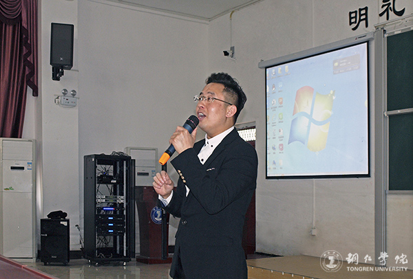 4月19日下午,伟德官网党委宣传部在博思楼206教室举办道德讲堂系列活动之声乐表演的魅力与价值,特邀知名歌手、伟德官网艺术学院声乐教师覃春江作了声乐表演专题讲座,全校200余名师生到场聆听了讲座。